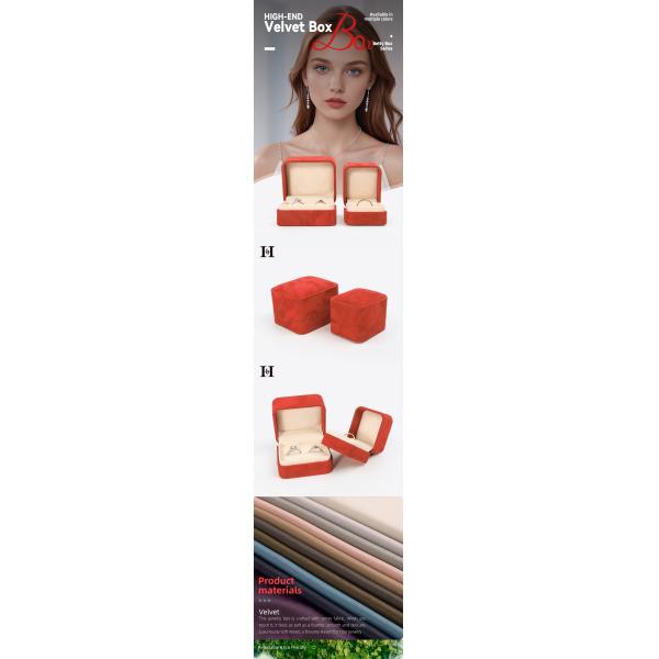 Buy Square red Velvet Jewelry ring Box customizable Jewellery Box packaging at wholesale prices