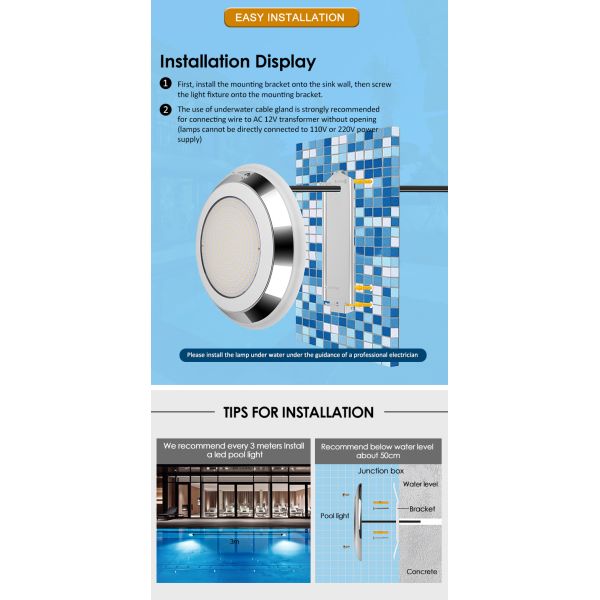 5.Easy to install, suitable for swimming pools, fountains,ect