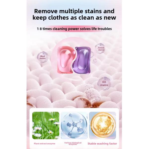 For professional-level cleaning results at home, look no further than our bio-enzyme laundry pods. Engineered with advanced technology, these pods contain four times the active ingredients of ordinary detergents, delivering deep and thorough cleaning. Whether it's tough food stains, grass marks, or oil spills, our pods have the power to tackle them all. The low-foam formula ensures efficient cleaning, reducing water and energy consumption. Plus, the water-soluble design makes them easy to use and eco-friendly. Experience the difference of professional cleaning with our premium laundry pods.