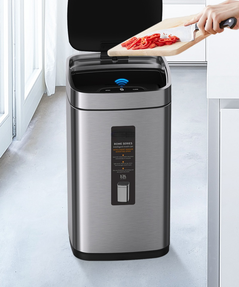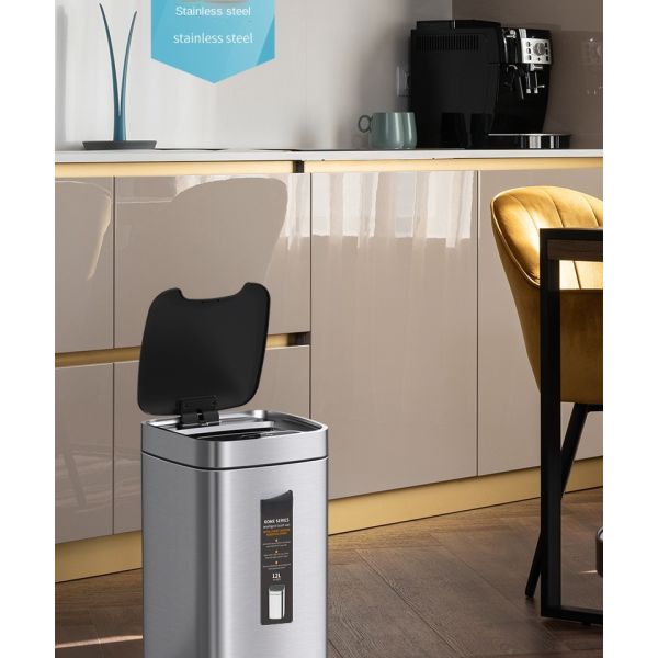 Living Room Light Luxury Smart Kitchen Household Bathroom sealed Stainless Steel Induction Smart Trash Can with Lid