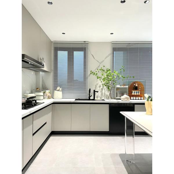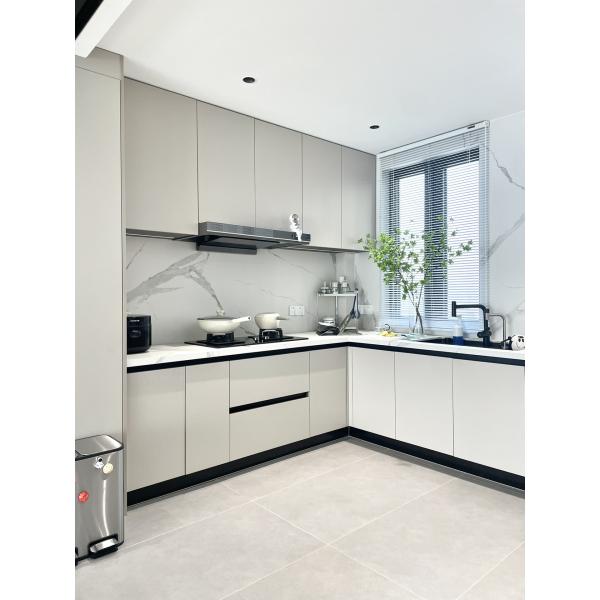 The Modern Kitchen Cabinet is expertly crafted using a combination of materials such as particle board, Melamine, Lacquer, UV, and PET. This blend of materials ensures both durability and aesthetic appeal, making the cabinet a perfect balance of style and functionality. Additionally, the option of Solid Wood accents adds a touch of natural beauty to the modern design.