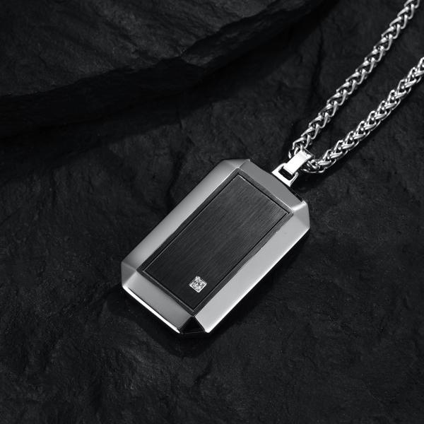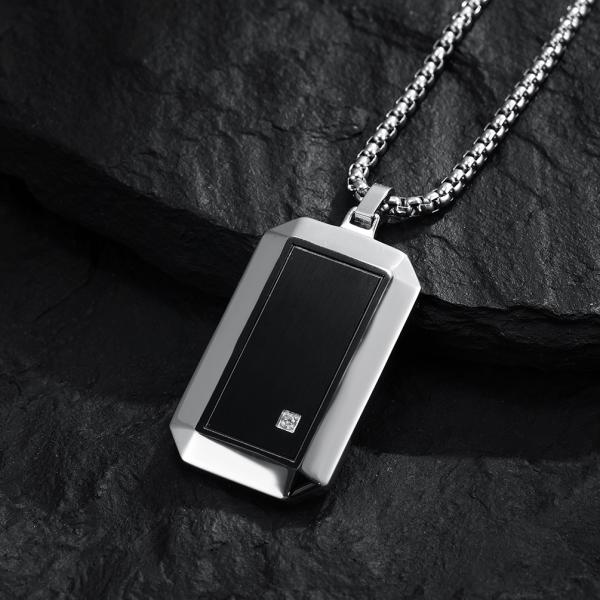 Stainless Steel Square Religious Cross Pendant Necklace for Men with Diamond Stainless Steel Christian Jewelry