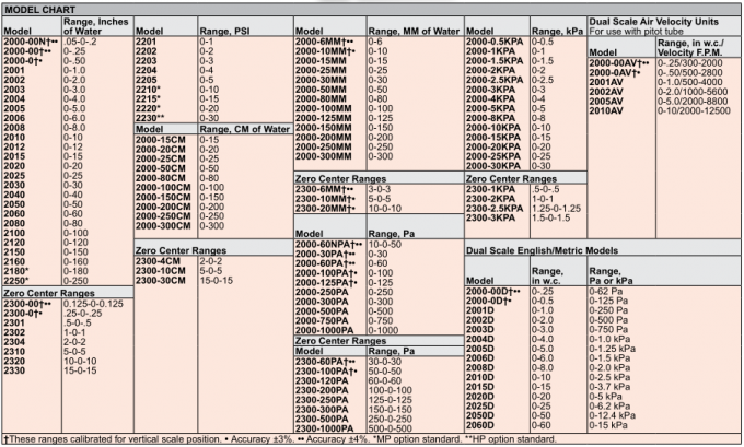 Accuracy: ±1% FS (±2% for ranges ≤1 in w.c.).
