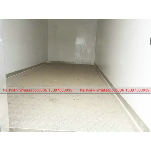 1. Outside and inner layer: glass plate 2. middle layer: Polyurethane foam 3. Thickness: 80mm 4. Bottom floor: 3mm Pattern plate 5. Aluminum alloy edges and corner, stainless steel locker, stainless steel door frame. 6. Energy saving lights in side of Van body. 7.Refrigerated unit: from 5 to -18 degree | ||||