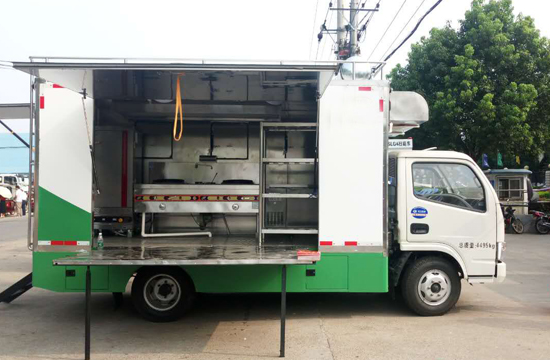 Buy DongFeng 4.5ton  4.5-meter Double-door Stainless Steel Extended Dining Car on Both Sides Cold and Fresh Cabinet Dining Truck at wholesale prices