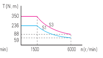 The driving motor adopts a servo motor, which adopts speed closed loop control. The motor transmits speed and torque to the test spindle. The motor power is 37kW, and the motor characteristic curve is as follows.