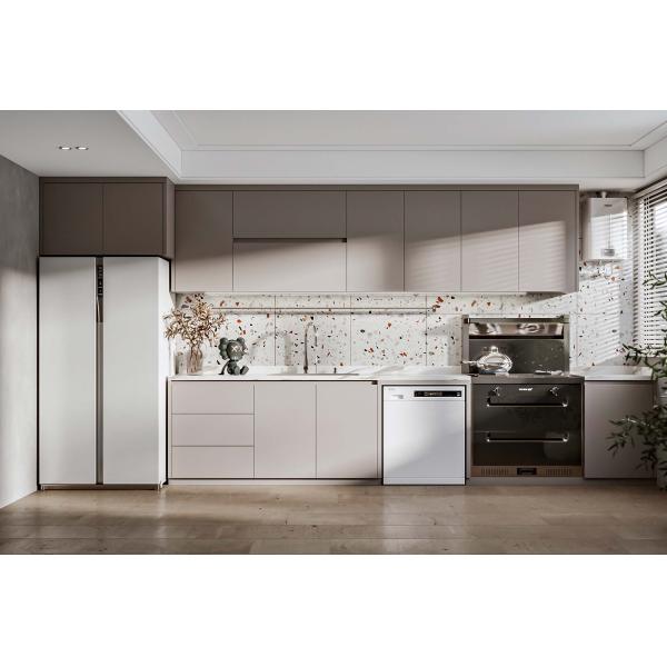 Featuring a modern design aesthetic, the Modern Kitchen Cabinet combines sleek lines, contemporary finishes, and quality craftsmanship. The cabinet is available in a range of finishes including Melamine, Lacquer, UV, and PET, providing options to suit various interior styles and preferences.