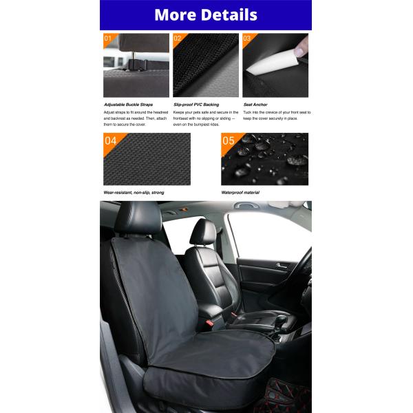 • Waterproof & Durable: Made with high-quality waterproof materials, this cover protects your car seats from spills, dirt, and pet fur. The durable fabric ensures long-lasting protection, even during regular use.