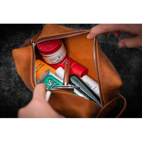 Toiletry Bag, PU Bag Factory Supply Toiletry Bag Travel Large Capacity Cosmetic Bag Men'S Hand-Held Genuine Leather Retro DOPP KIT