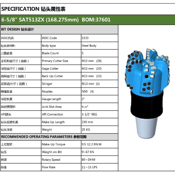 6-5/8'' Steel Body 5 Blade 13mm Cutter PDC Drill Bit