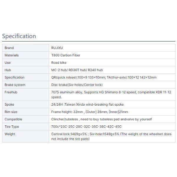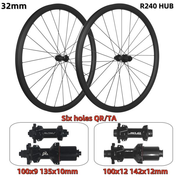 Buy RUJIXU Factory 700c 32mm Carbon Clincher Disc Brake Wheelset 24 Holes MC-2/R 240/RD-36T Tubeless Road Bike Wheels at wholesale prices
