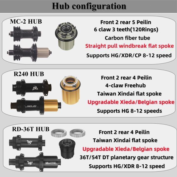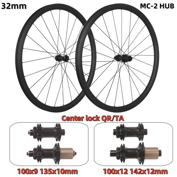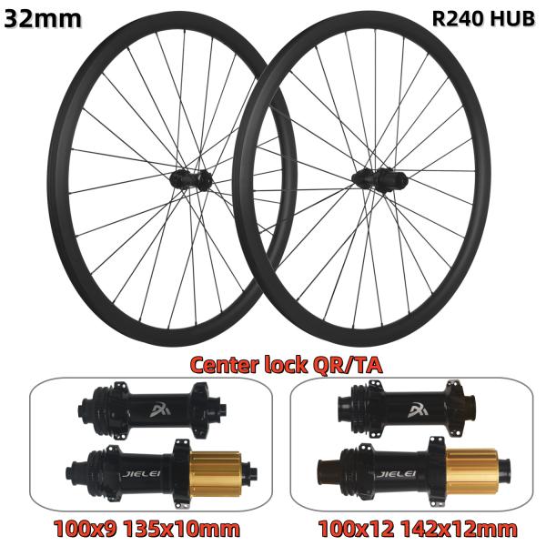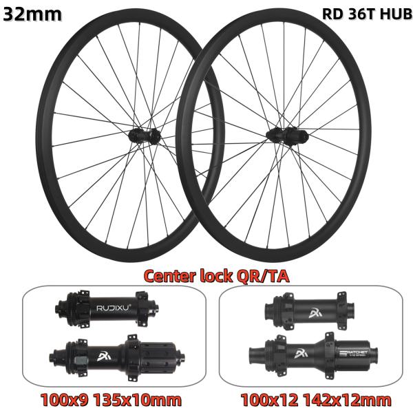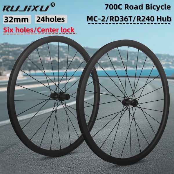 RUJIXU Factory 700c 32mm Carbon Clincher Disc Brake Wheelset 24 Holes MC-2/R 240/RD-36T Tubeless Road Bike Wheels