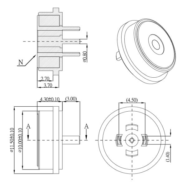 .Shape/size (e.g., circular Ø5mm, right-angled)