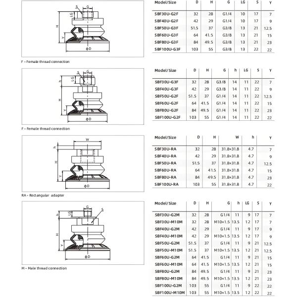 | SBF60U-□ | SBF60U-G2M | SBF60U-M10M | SBF60U-G2F | SBF60U-G3F | SBF60U-RA | |||||||