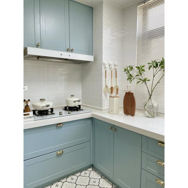 The countertop material options for this kitchen cabinet are equally impressive, with choices including artificial quartz, granite, and marble. These durable and beautiful materials not only enhance the aesthetic appeal of the cabinet but also provide a functional and long-lasting surface for meal preparation and cooking.