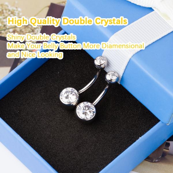 产品名称:14G 双水晶钛金肚脐环