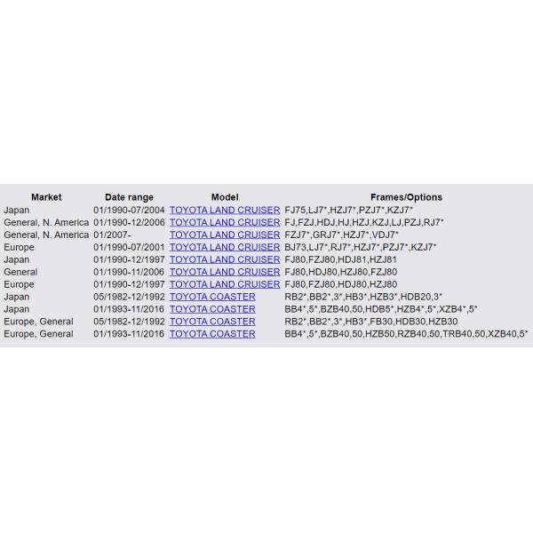 Model: Toyota Land Cruiser 1HZ 1HDT FJ75 Coaster BB4#