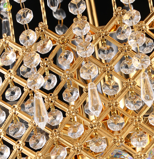 This is a luxurious chandelier made of metal and crystal. We strictly control the selection of materials, using high-quality metal and Chinese K9 crystal, and adopting E14/E12 light source. The light is bright and comfortable. The overall color is transparent and the base is gold. It is suitable for living rooms, restaurants, hotels, weddings and other scenes. I hope you will like it.
