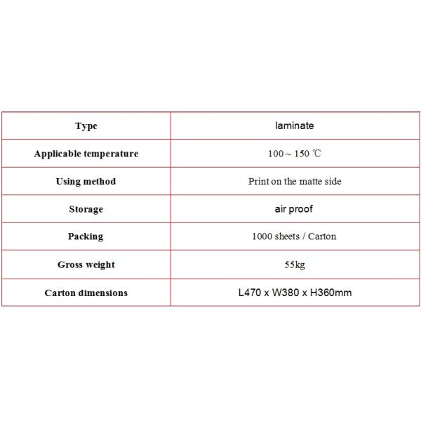 Originating from China, the MK MIP-DS-W sheets are known for their durability and compatibility with Epson and Cannon inkjet printers. The product offers a vicat softening point of 78±2, ensuring that it can withstand temperatures ranging from 100 to 150 ℃.