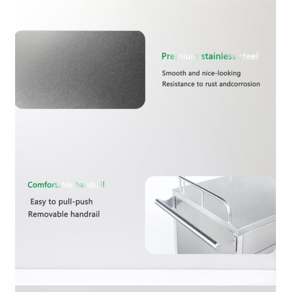 High Capacity Hospital Stainless Steel Trolley With Dirt Bag And Brake Casters Ss Dressing Trolley