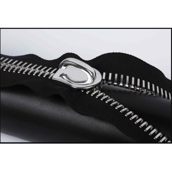 The #5 Hang shiny black metal zipper is a must-have for garment jackets. Its lustrous black finish adds a modern touch and guards against scratches. The polished teeth ensure smooth operation, eliminating snagging. Made of high-quality metal, it's durable, withstanding daily wear. Ideal for fashion-forward designs