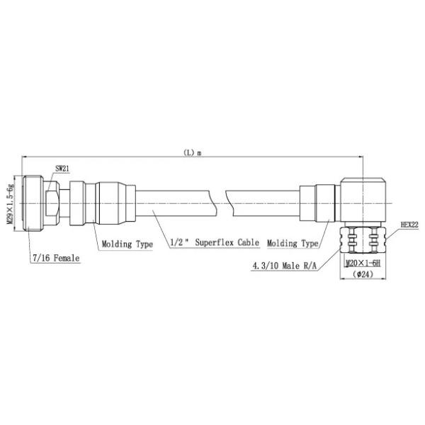 | Product Name: | 7/16 DIN Female - 4.3-10 Male 1/2" Superflex RF Coaxial Jumper Cable |