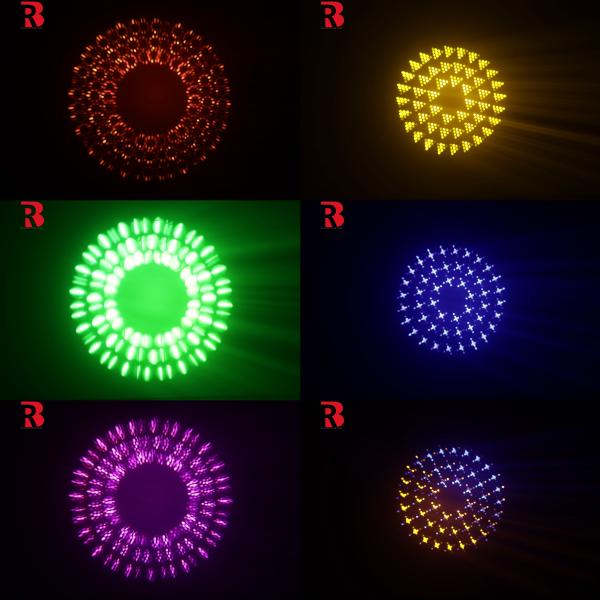 | Fixed color: | 1 fixed color wheel, including 13 color chips with white light, colorful effect, half color effect, linear color conversion and bidirectional variable speed rotating rainbow effect |