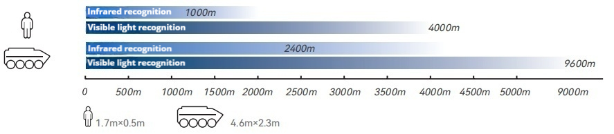 | Range | ≥ 2.4 km, for cars, ≥ 1.0km, for people | |