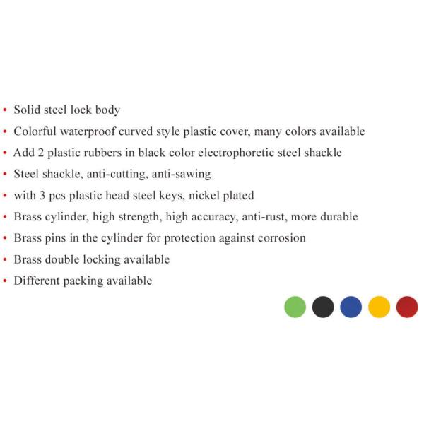 | Model Number: | Curved Shape Plastic Waterproof Cover Steel Padlock (Hard Bottom Cover Style) |