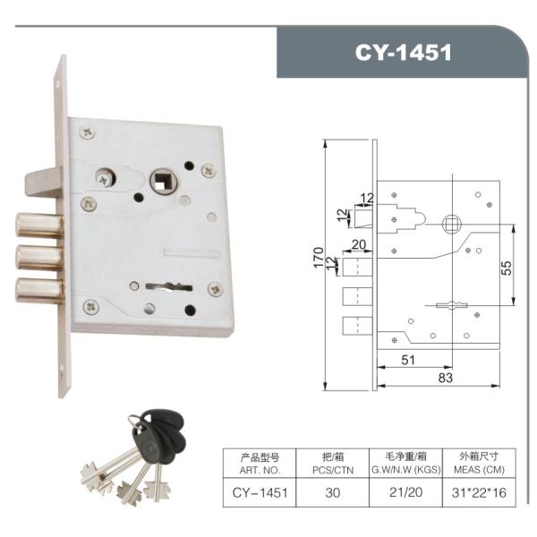 The Mortise Key Lock is classified under HS Code 83016000, which covers locks and keys made of base metal. It comes in four different finishes, namely SN, GP, CP, and AB, to match your door's aesthetic and complement its design.