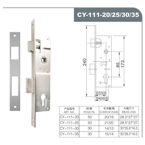Aluminum Door Lock Durability Anti-theft Standard A Backset 20/25/30/35mm