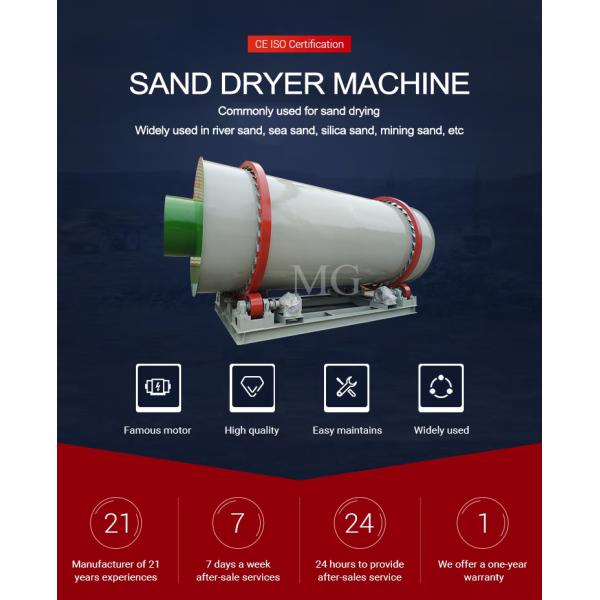 Our development and production of high efficient combined three-cylinder rotary dryer is mainly used for certain humidity and particle size range materials,such as dry mortar industry used sand, river sand, quartz sand, garnet sand and various sizes sand of foundry industries, blast furnace slag for building materials used in cement industry,the small size of clay, small particles materials which use for the chemical industry no chemical changes, can bear high temperature and dust soild. After drying the moisture content of materials less than 1%-0.5%, can meet different industries requirement of final moisture after drying material. Drying material require not stick cylinder wall and lifting plate is appropriate, heat exchange gas temperature not higher than 750 degrees celsius before into the dryer, if have special requirements on high temperature drying, the entrance of the drying machine, the cylinder inner and lifting plate can be made by heat-resistant steel plate.