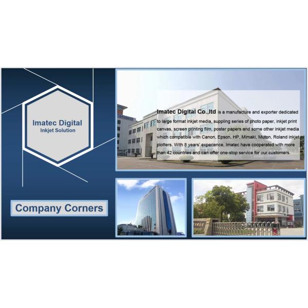 Imatec Co., Ltd. committed to manufacture and export inkjet photo paper for many years, our factory is a oriented-quality supplier and has specialized in printing market for many years. Our photo paper are very popular in our customers who come from all over the world. Samples for testing in advance are all available.