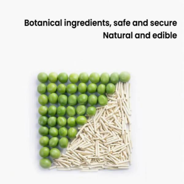The Tofu Cat Litter is made from soybeans, pea and corn starch, which are a renewable and sustainable resource. The material are processed to produce a fine, 1.5mm granule that is soft on your cat's paws and does not contain any harmful chemicals or additives. The granules are also highly absorbent, which means they can effectively absorb moisture and odors, keeping your home smelling fresh and clean.