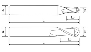 | Sizes | Cut Diameter D | Cut Length Lc | Shank Diameter d | Overall Length L | Flutes No. |