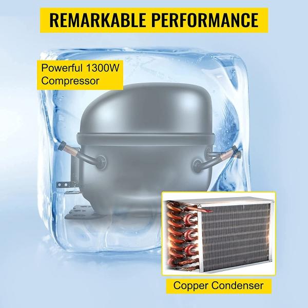 The inside of the evaporator is made of 304 grade stainless steel, and the inside is made of pure copper and copper pipes. The cooling speed is fast. The snow melting time only needs 30 minutes, which saves time and is more efficient.