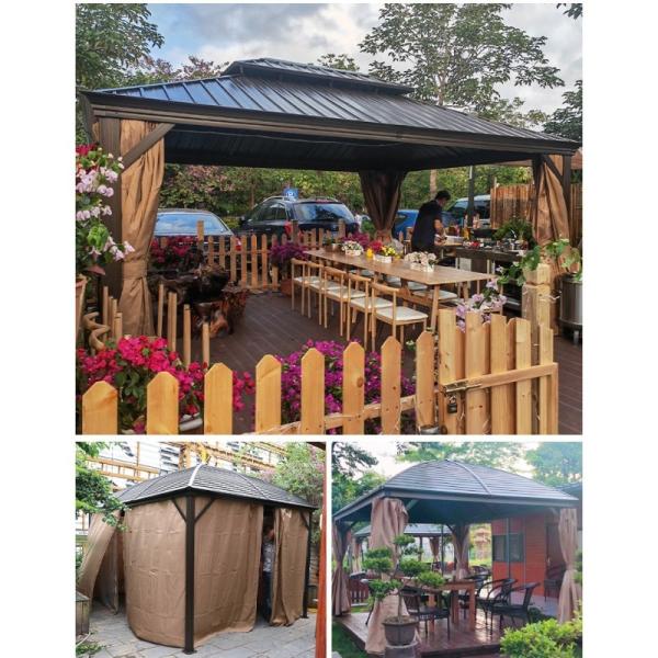 Transform your backyard into a stylish retreat with our modern aluminum metal gazebo, designed for durability, comfort, and timeless appeal. Combining sleek aesthetics with engineering excellence, this steel-roofed structure is perfect for gardens, patios, or poolside areas, offering year-round protection and a touch of luxury.