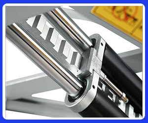 Four-cylinder interlocking structure and pneumatic double self locking system ensure the lifting level on both platforms.