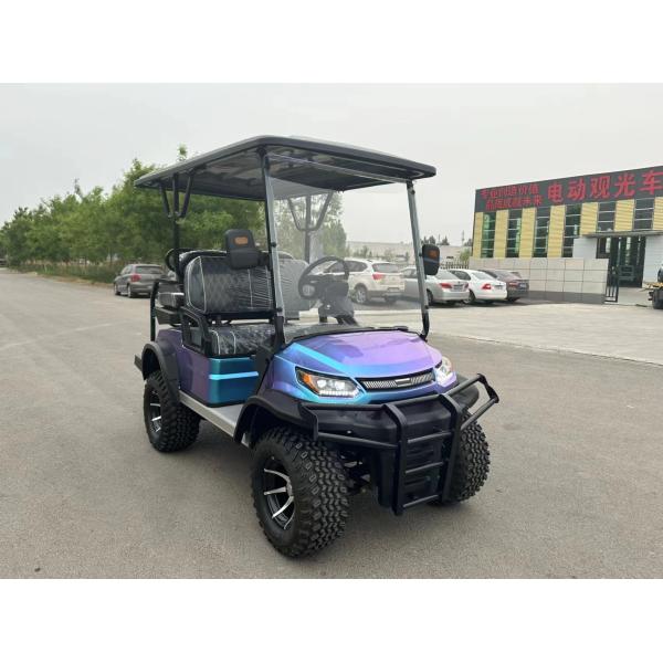 We proudly introduce this golf cart, which blends modernity and innovative design with elegant hues of purple and blue, adding a unique touch to your golf experience.
