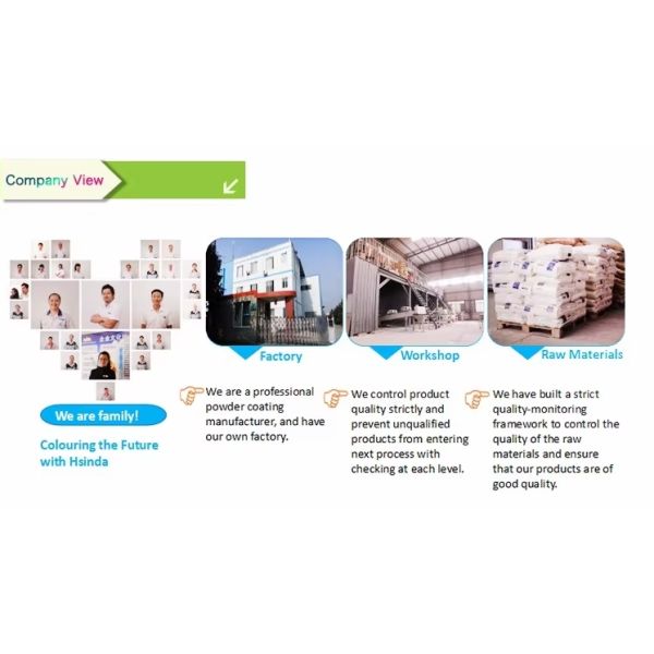 Hsinda powder coating, offers the best levelling and adhesion to metal surface, with above 60% DSM resin content.
