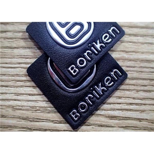 Black Leather Patches With Silver Embossment TPU Logo For Garments,Bags Etc