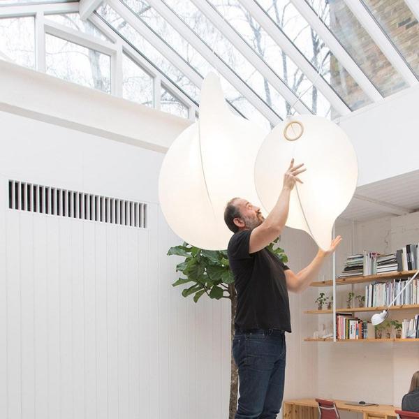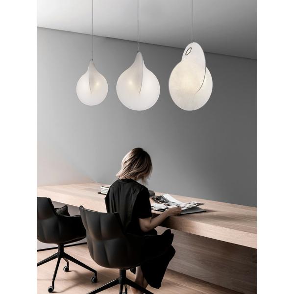 The main material of this pendant light is silk, and the color of the lamp body is white. The light source of this pendant light is E27,There are different sizes for your choice. Modern and simple design, it is very suitable for home decoration.