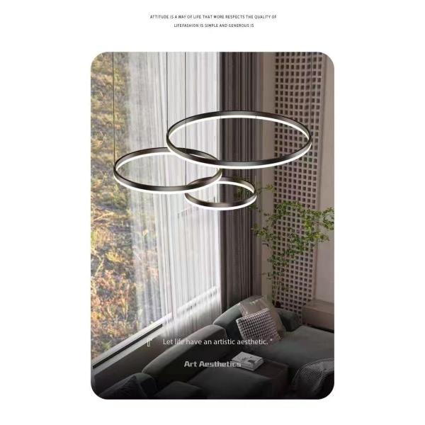 Design sense and practicality at the same time : modern simple style of lighting design is simple and generous, in line with the aesthetic of modern home, can be perfectly integrated with a variety of home decoration styles, improve the overall space style. For example, the three-circle dining chandelier is not only simple and modern in appearance, but also has the property of network red, suitable for Nordic style home decoration