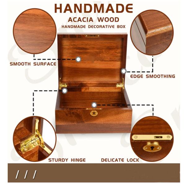 Buy Newest Acacia Wood Decorative Storage Boxes Wooden Jewelry Box Wooden Box with Hinged Lid at wholesale prices