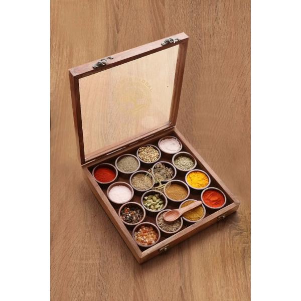 Product name | Wooden Handcrafted Spice Box/ Masala Dabba with 16 Round