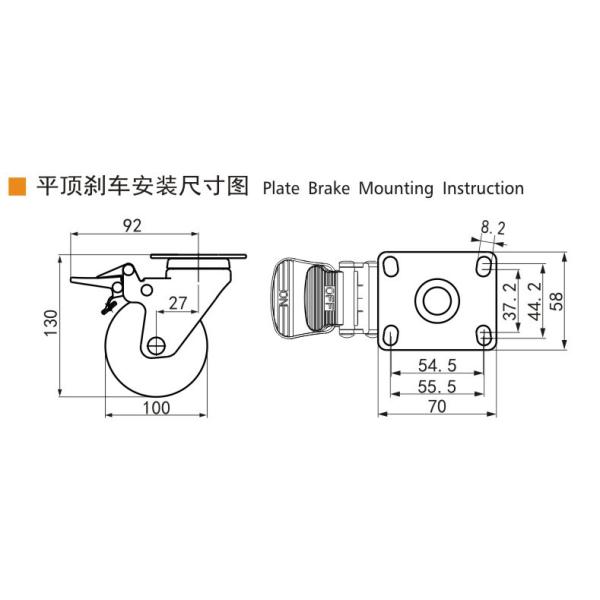 | 3714-77 | 4" | 100mm | 25mm | 33mm | 80KG | PP | TPU | Single ball bearing 6001 | -20℃~80℃ | 95A |