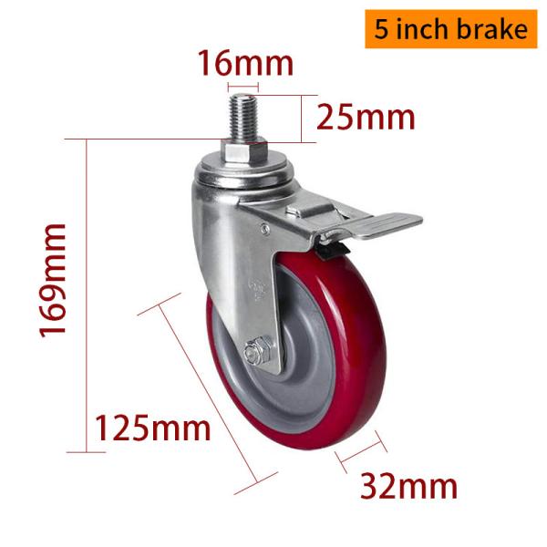 EDL Medium Duty 5inch 150kg Red TPU Threaded Caster by Swivel and Brake type 505S-86