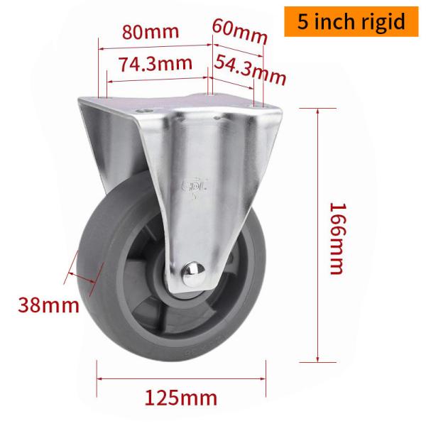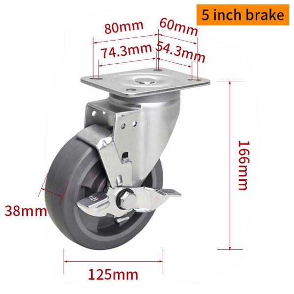 | 665-56 | 5" | 125mm | 38mm | 46mm | 200Kg | PP | TPE | Double ball bearing 6201 | -30℃~70℃ | 80A |