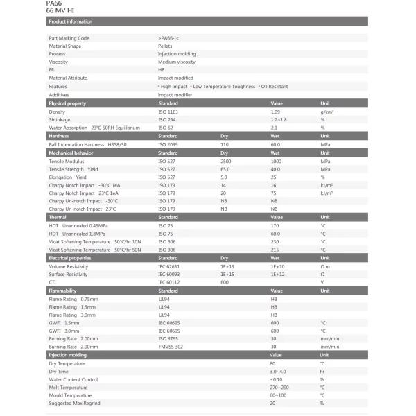 | High impact PA66 plastic 66 MV HI American Shulman impact modified low temperature toughness oil resistant nylon 66 raw material |