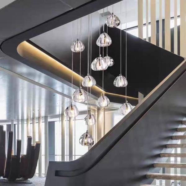 Buy Hotel Decoration Crystal Staircase Pendant Light With Transparent Ball And Crystal Body at wholesale prices